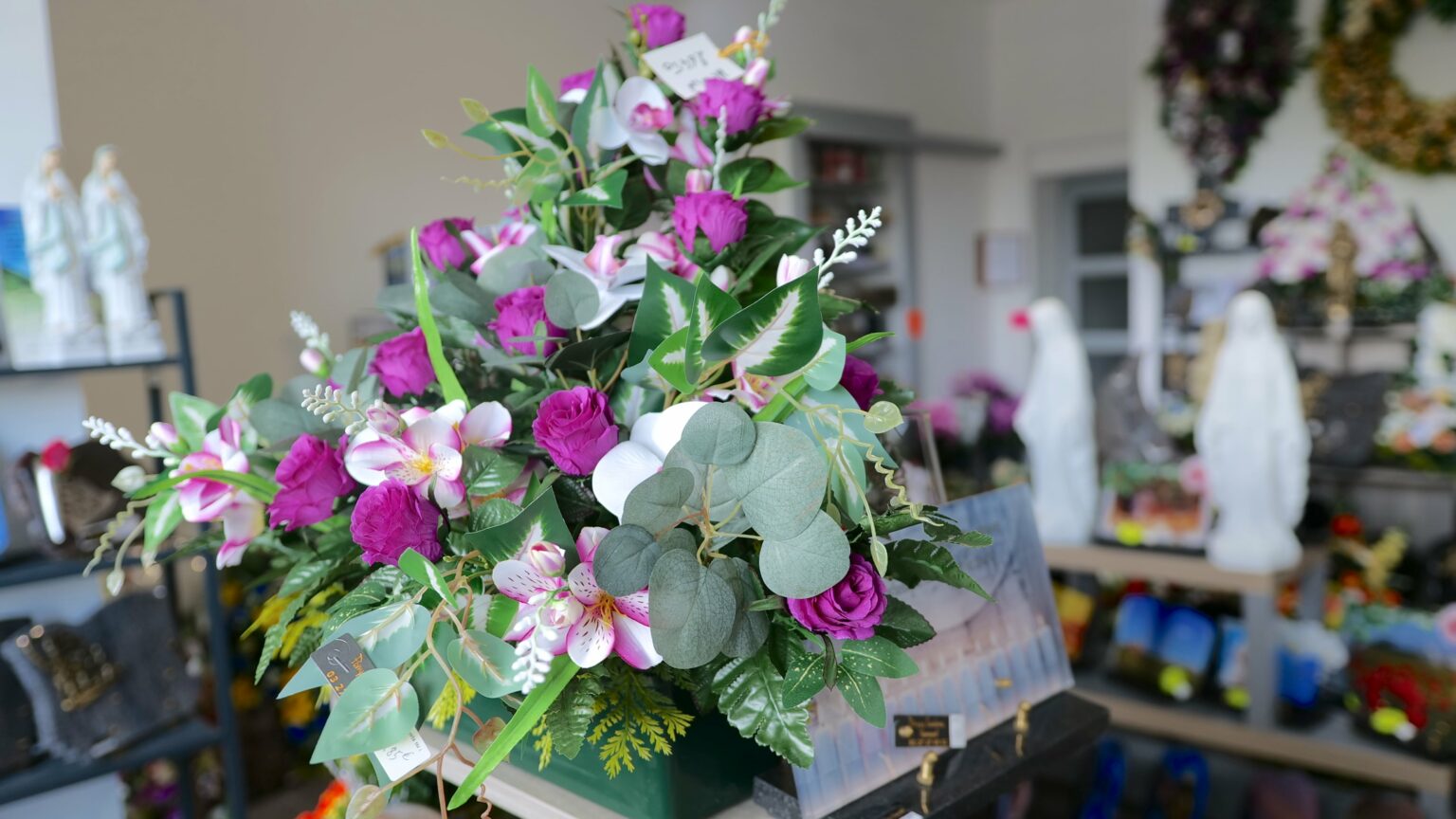 - – les articles : cercueil, capiton, urne, fleurs, plaques;